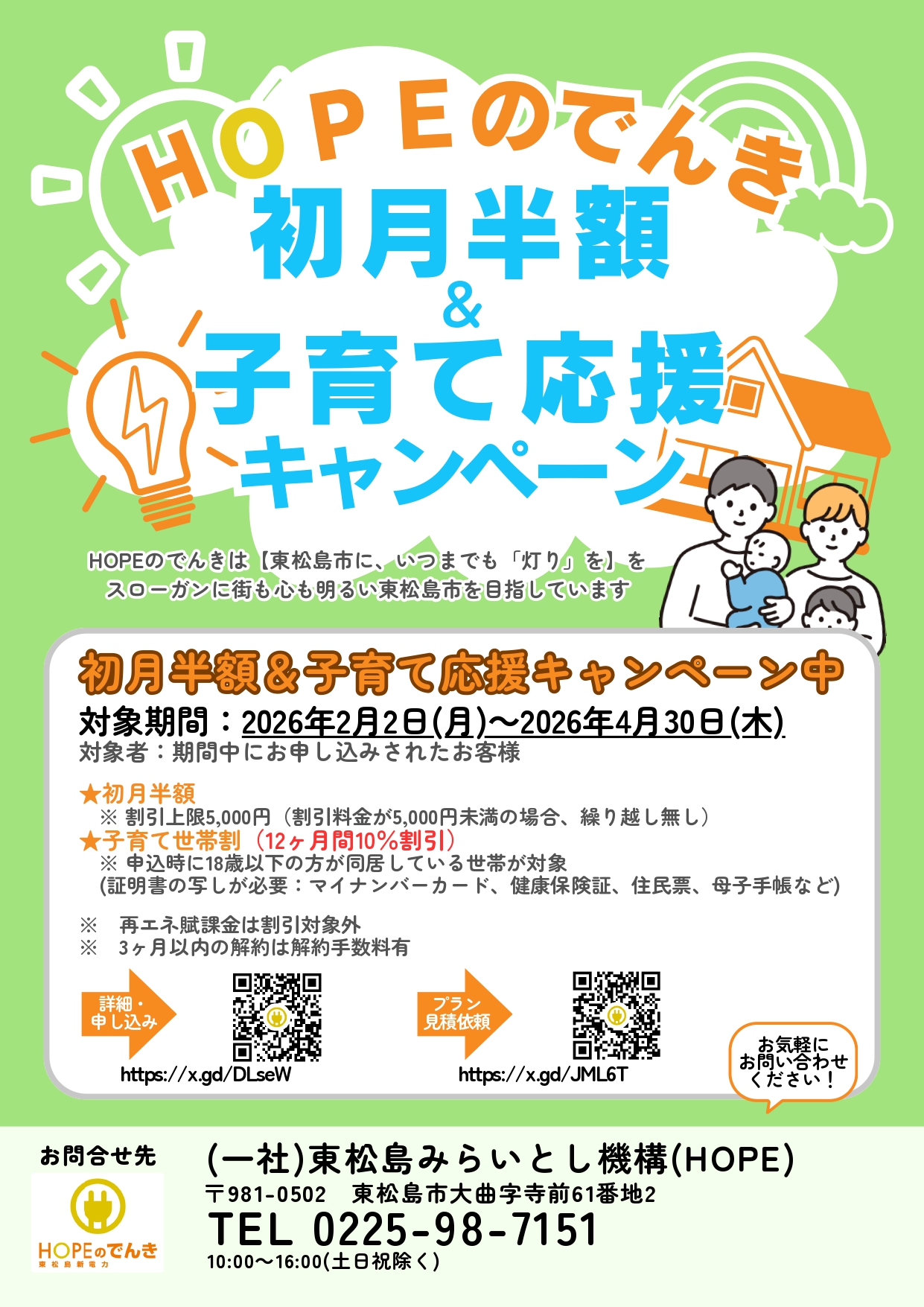 「HOPEのでんき」初月半額キャンペーン実施中!